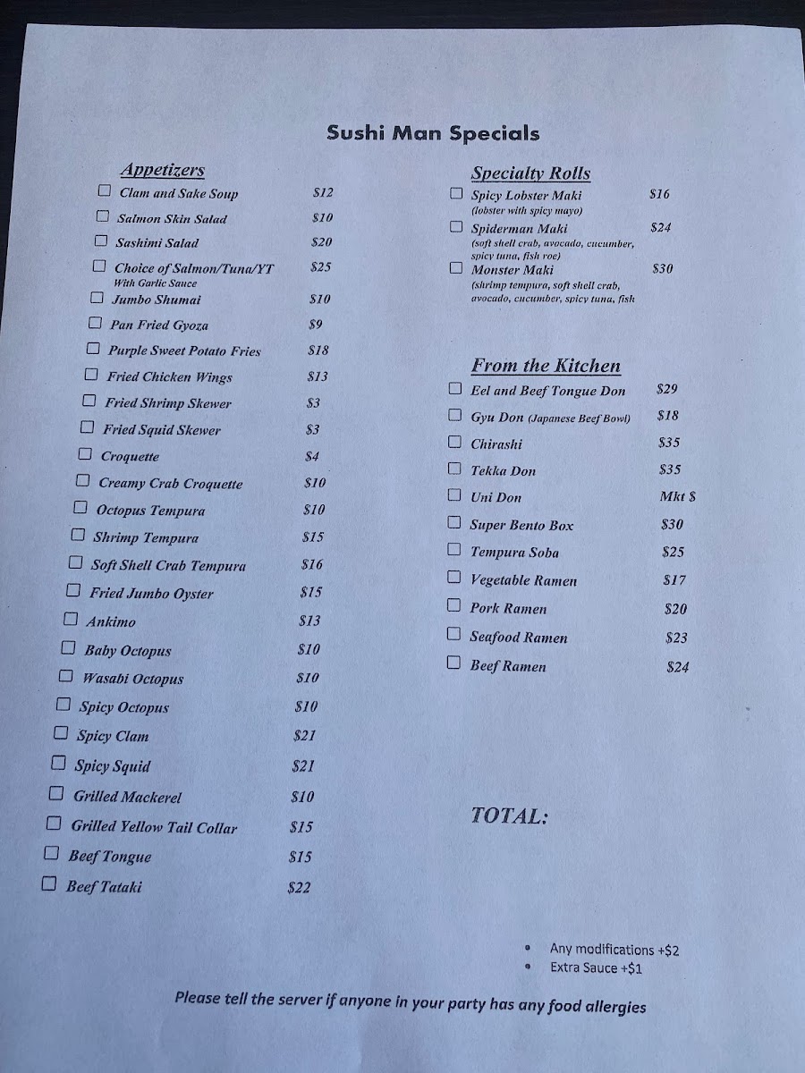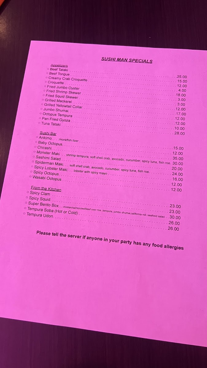 At Sushi Man, the focus is on providing the freshest ingredients and meticulously crafted dishes that capture the essence of Japanese cuisine. From the moment you step inside, you are greeted by a calm and welcoming ambiance, perfect for savoring every bite without feeling rushed. The staff are friendly and attentive, making you feel like part of the Sushi Man family.