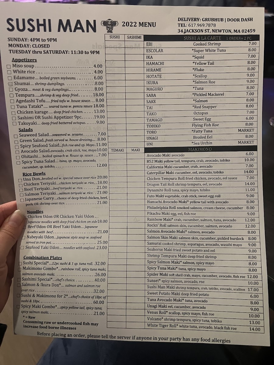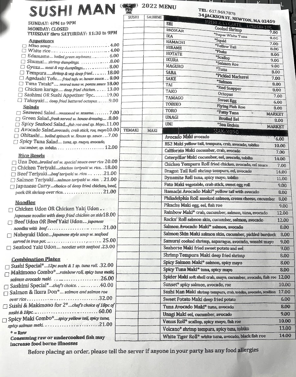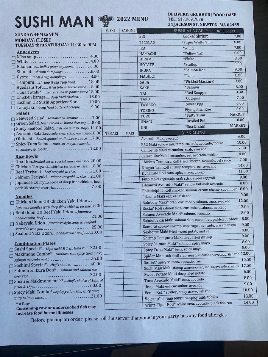 If you're searching for a sushi experience that truly resonates with authenticity, look no further than Sushi Man, nestled in the charming neighborhood of Newton, MA, at 34 Jackson St. With a rich history and a warm, inviting atmosphere, this sushi haven has become a beloved fixture for both locals and visitors alike.